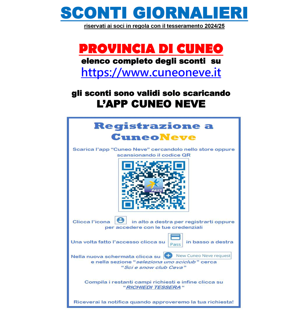Scarica l’App per la Cuneo Neve Card e inizia ad usufruire degli sconti esclusivi per i Soci Sci&Snow Club Ceva